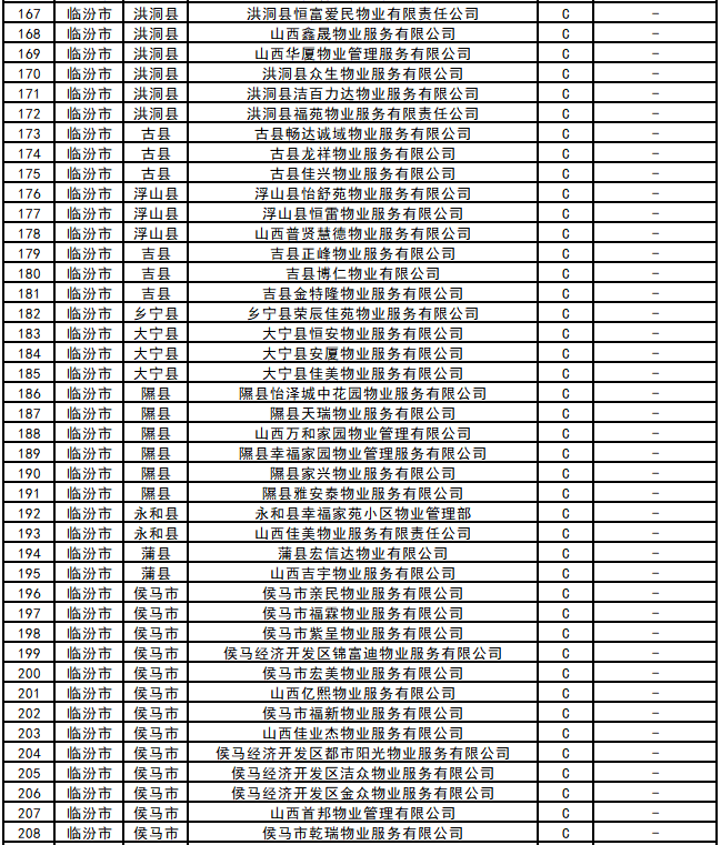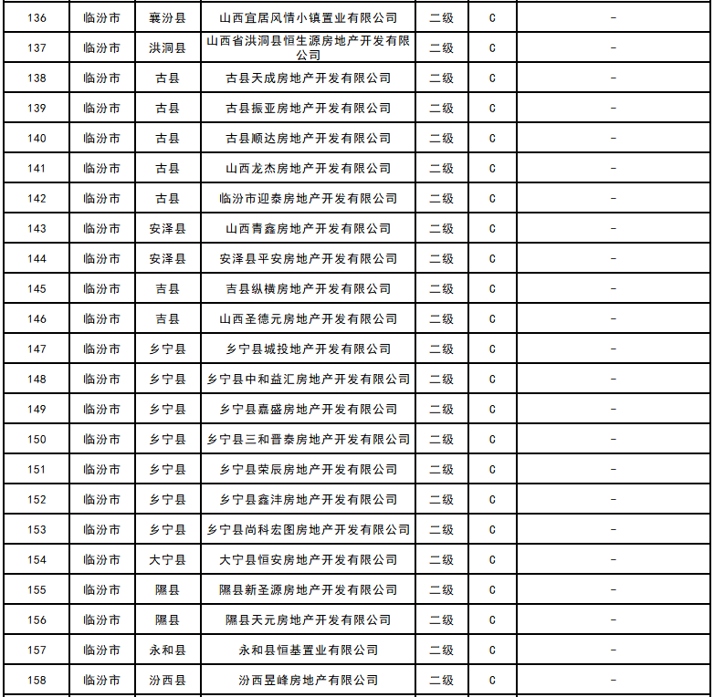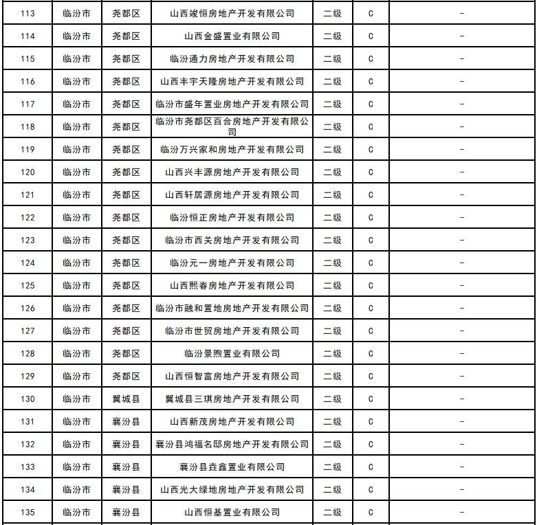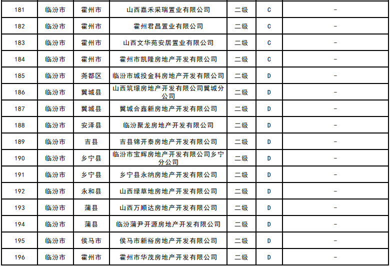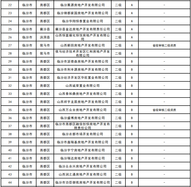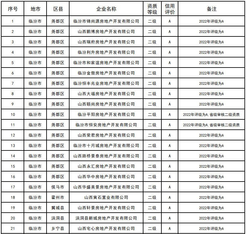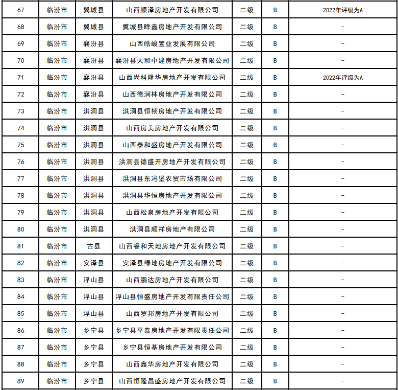 注:文末附2023年度临汾市房地产企业信用评价结果详表