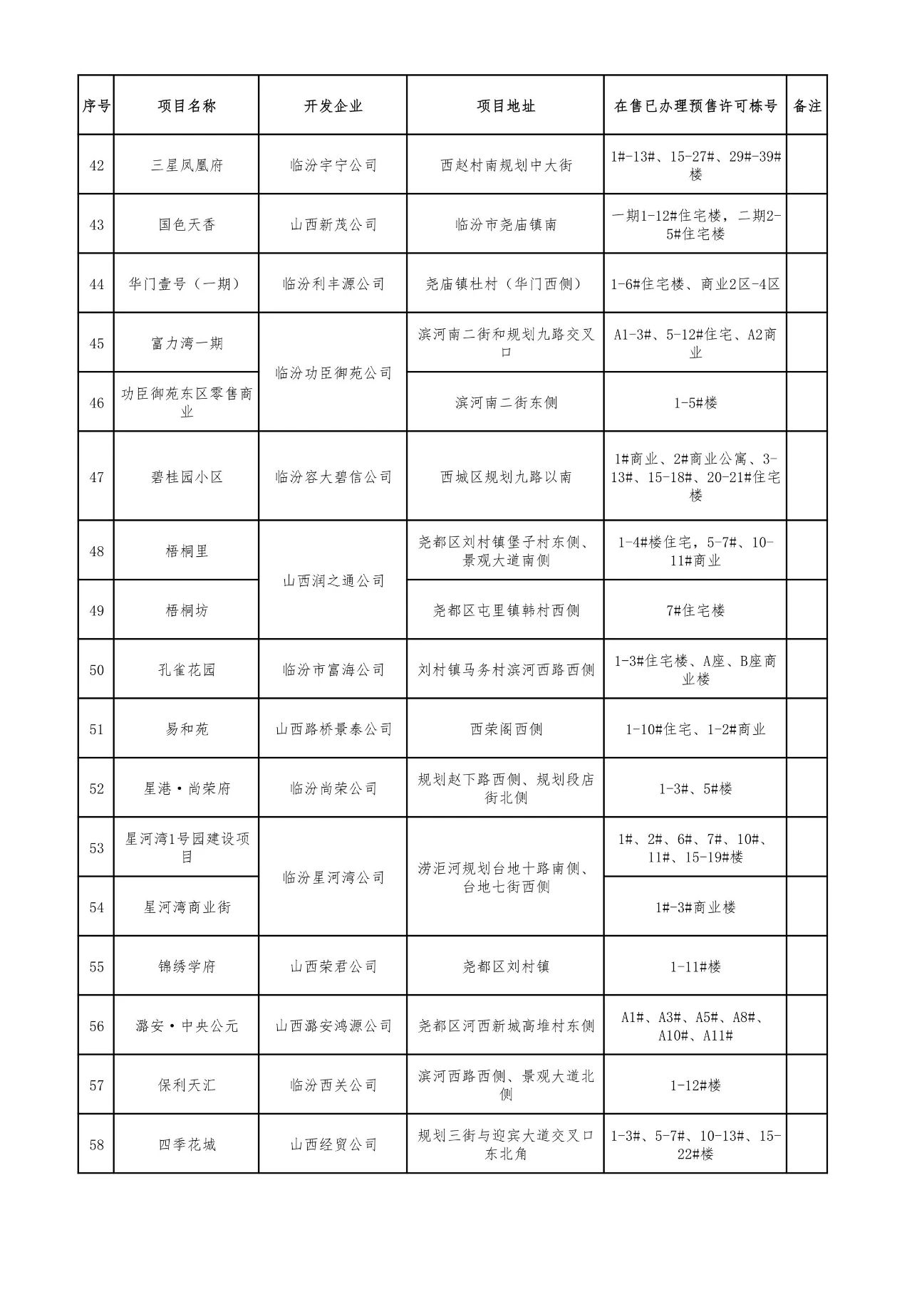 临汾市房地产服务中心 ‖ 最新一期市区可售楼盘信息公示
