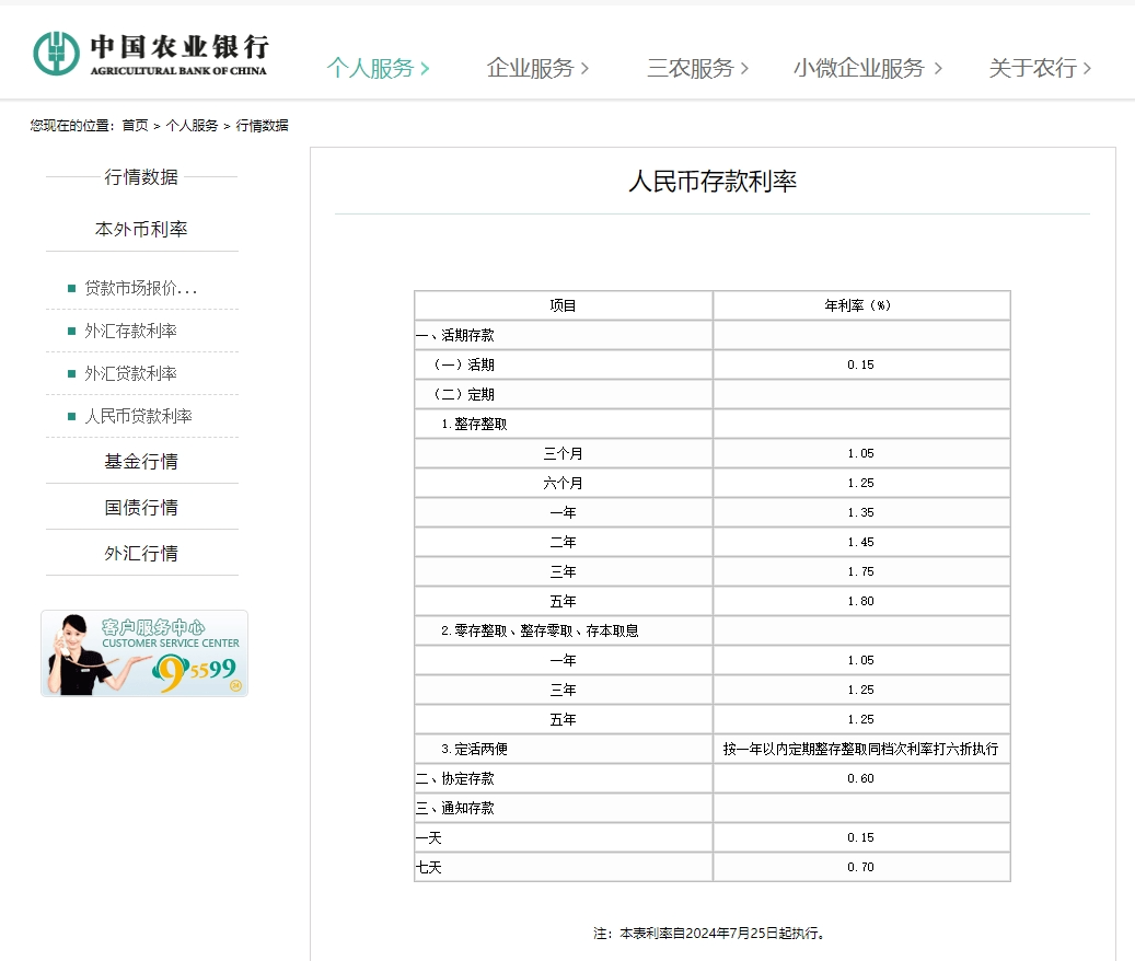 六大行存款利率集体告别“2字头”。如果以10万元存款整存整取定期存五年计算,7月24日前存入,储户将获得10000元利息。但在7月25日存入,储户将获得9000元利息,减少1000元。