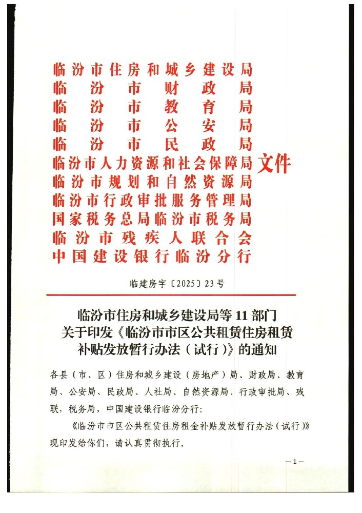 临汾市市区公共租赁住房租赁补贴发放暂行办法(试行)
