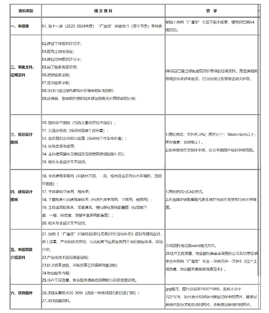 第十一届(2023-2024年度)“广厦奖”评选项目(非住宅类)提交资料及要求