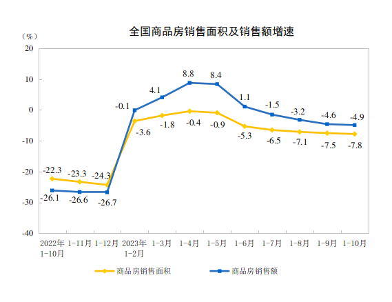 2023年1—10月份全国房地产市场开发投资和销售情况
