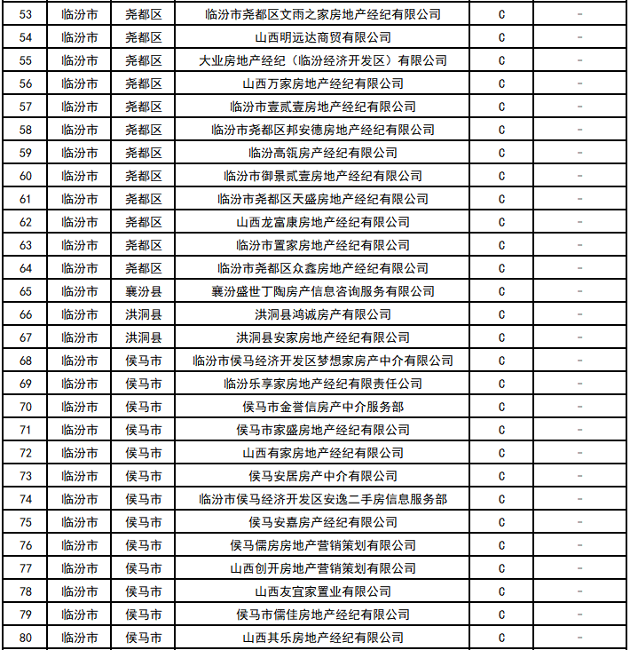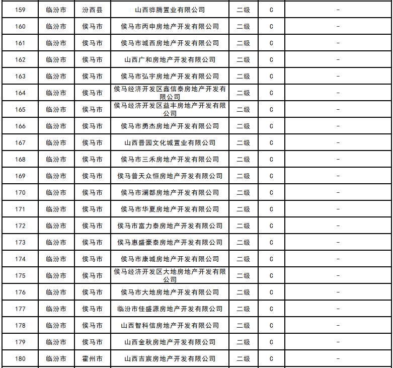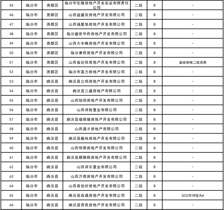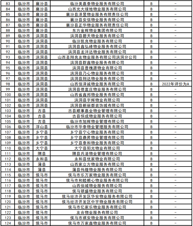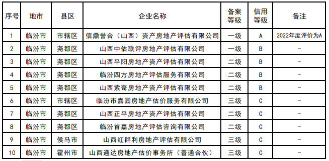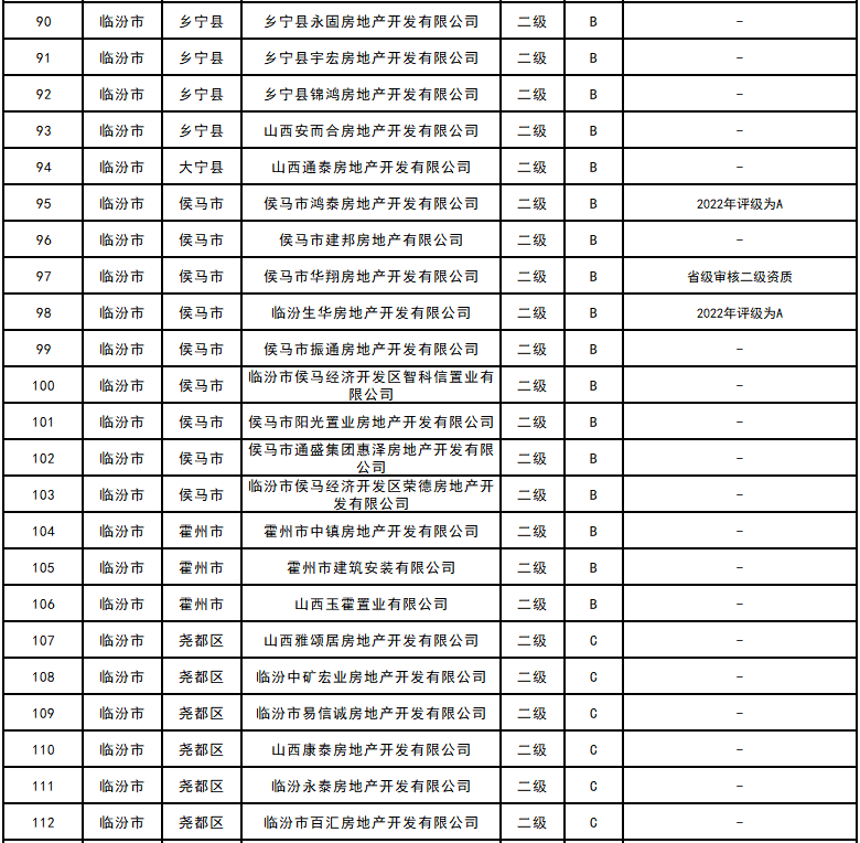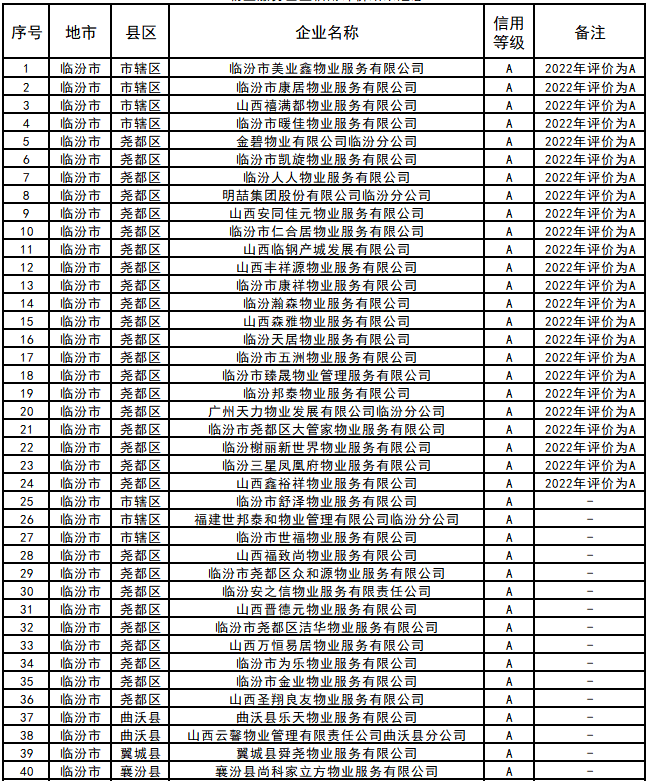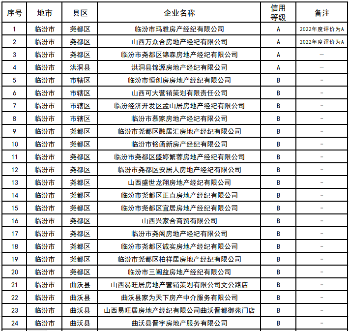 注:文末附2023年度临汾市房地产企业信用评价结果详表